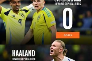 体育资讯11月18日讯 欧洲区世预赛已经接近尾声,哈兰德率领的挪威8战全胜挺进世界杯,他本人更是8场16球领跑射手榜,与另一支拥有豪华锋线的球队瑞典形成了鲜明反差。